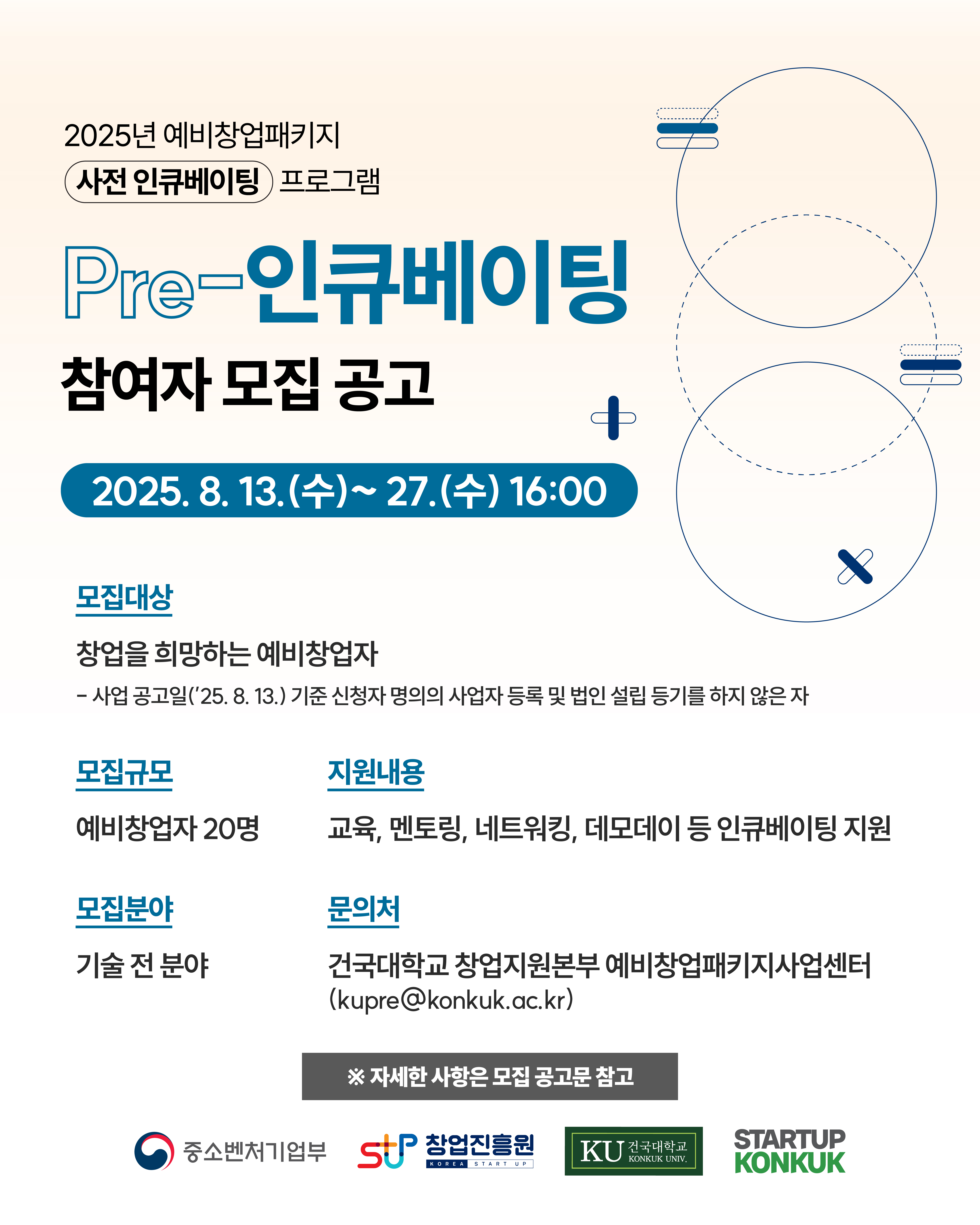 2025년 예비창업패키지 사전 인큐베이팅(Pre-인큐베이팅) 프로그램 참여자 모집 공고