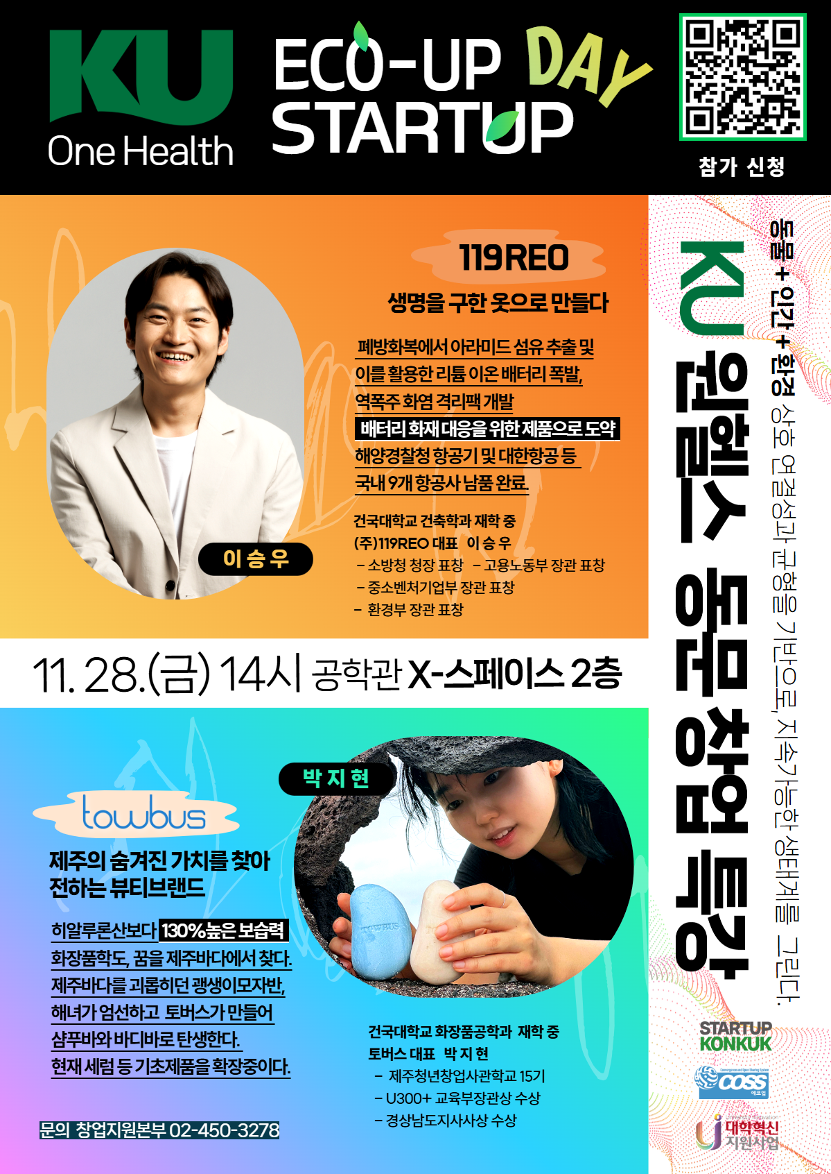 특히, 이번 특강은 에코업혁신융합대학 사업단과 함께 KU 원헬스 가치에 부합하는